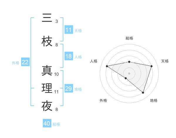 三枝 真理夜さんを姓名の画数から五運を鑑定