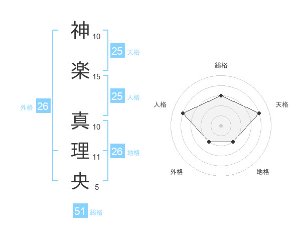 神楽 真理央さんを姓名の画数から五運を鑑定