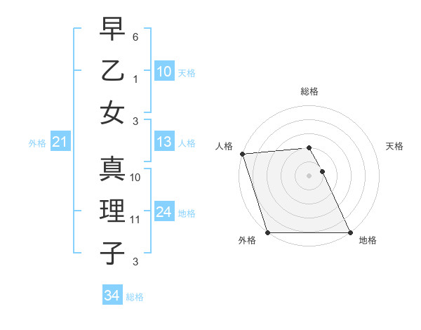 早乙女 真理子さんを姓名の画数から五運を鑑定