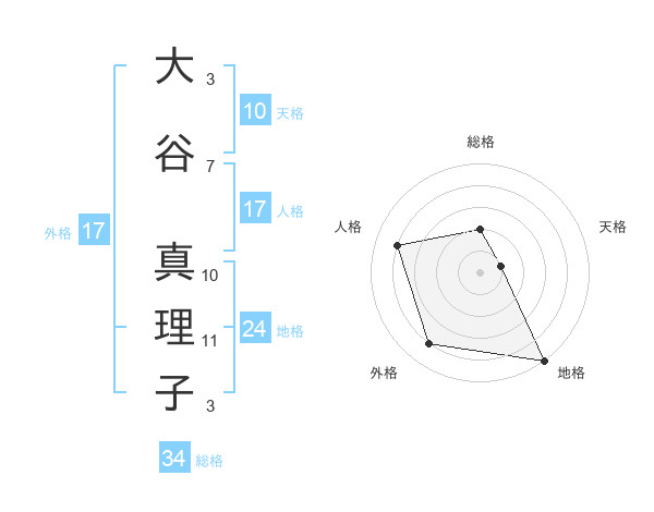 大谷 真理子さんの総格は34画の2点!