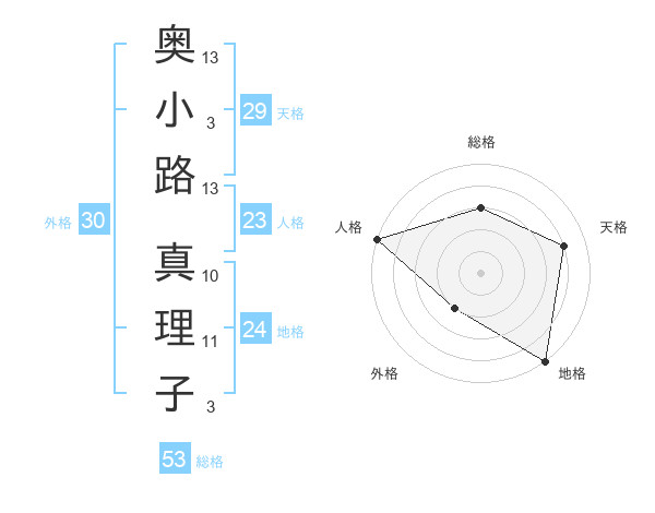 奥小路 真理子さんの総格は53画の3点!
