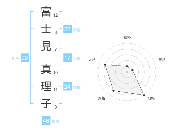 富士見 真理子さんを姓名の画数から五運を鑑定