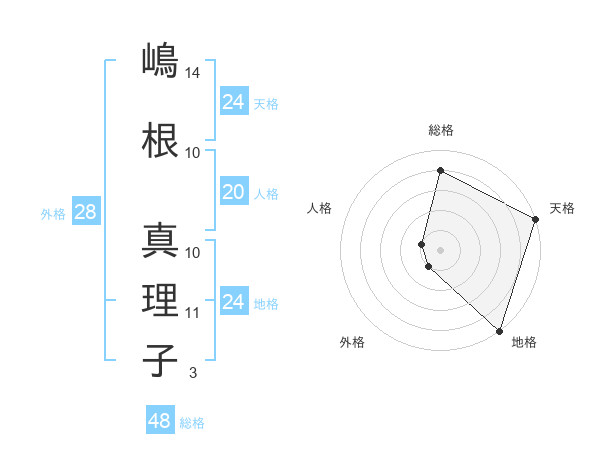 嶋根 真理子さんの天格は24画の5点!