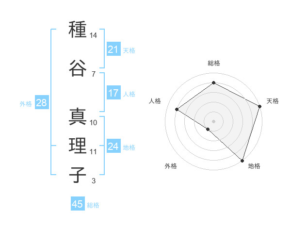 種谷 真理子さんを姓名の画数から五運を鑑定