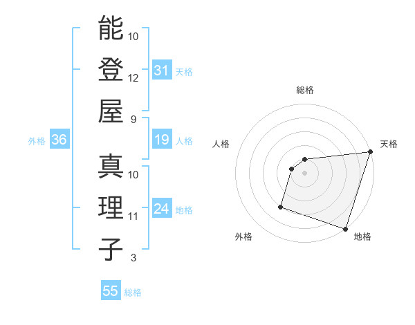 能登屋 真理子さんを姓名の画数から五運を鑑定
