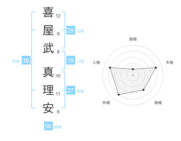 喜屋武 真理安さんを姓名の画数から五運を鑑定