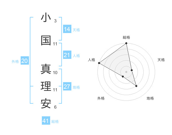 小国 真理安さんの総格は41画の5点!