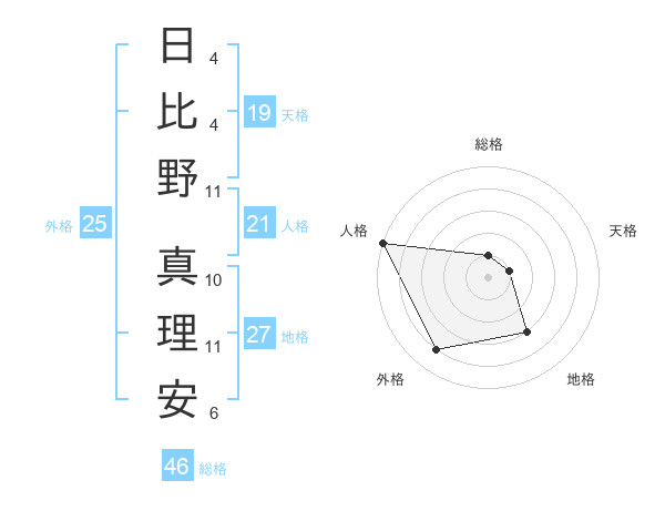 日比野 真理安さんを姓名の画数から五運を鑑定