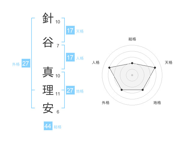針谷 真理安さんの天格は17画の4点!