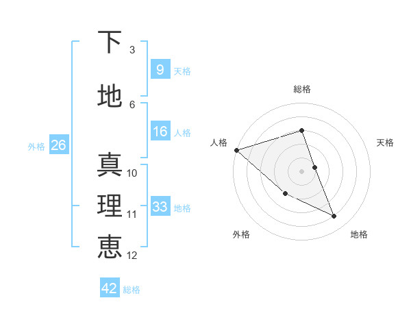 下地 真理恵さんを姓名の画数から五運を鑑定