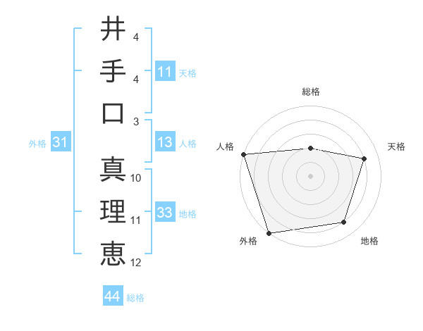 井手口 真理恵さんを姓名の画数から五運を鑑定