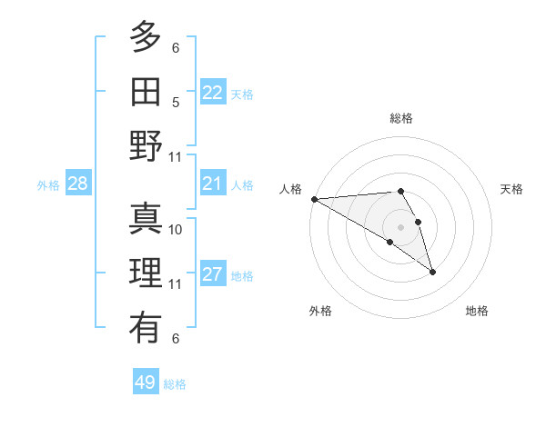 多田野 真理有さんを姓名の画数から五運を鑑定