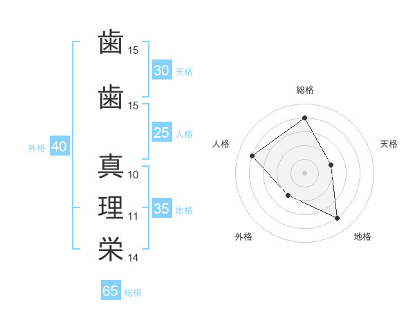 歯歯 真理栄さんの総格は65画の4点!