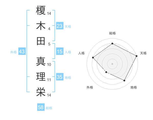 榎木田 真理栄さんの天格は23画の5点!