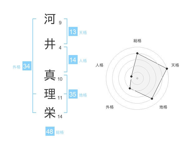 河井 真理栄さんを姓名の画数から五運を鑑定