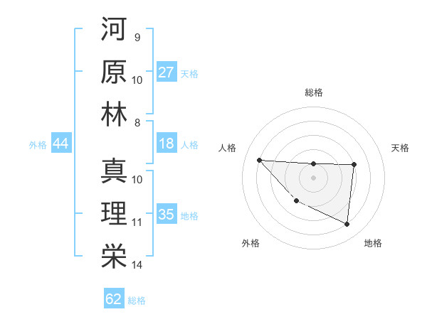 河原林 真理栄さんを姓名の画数から五運を鑑定