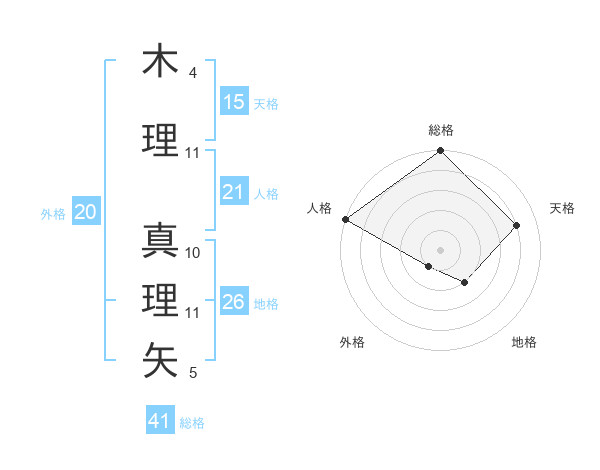 木理 真理矢さんを姓名の画数から五運を鑑定