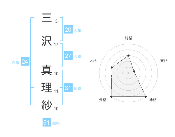 三沢 真理紗さんの総格は51画の3点!