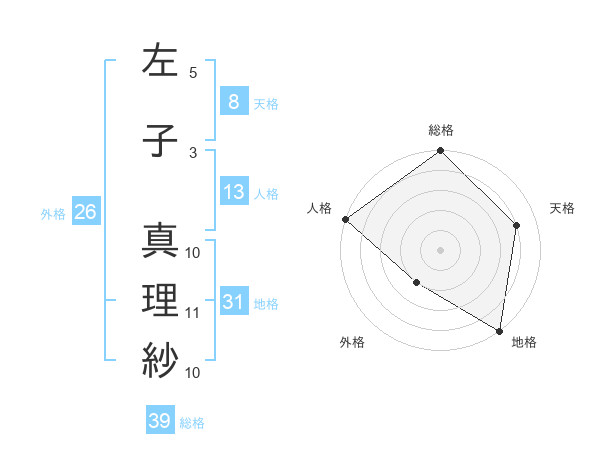 左子 真理紗さんを姓名の画数から五運を鑑定