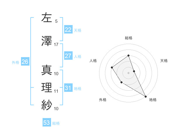 左澤 真理紗さんを姓名の画数から五運を鑑定