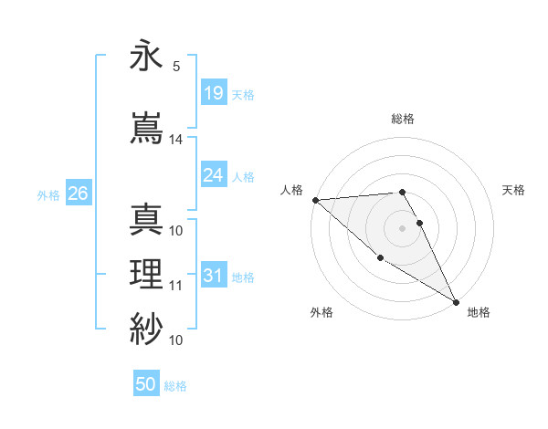 永嶌 真理紗さんの総格は50画の2点!