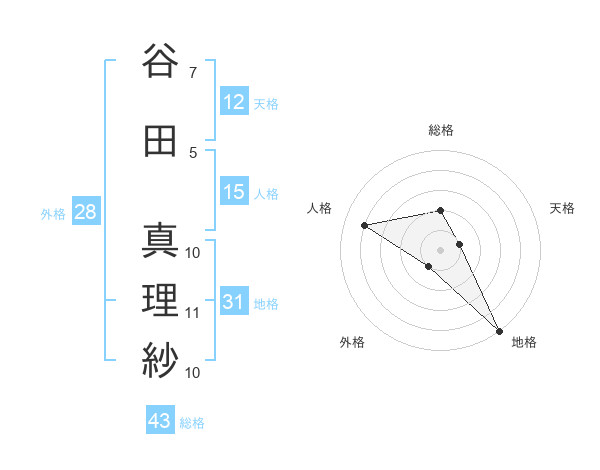 谷田 真理紗さんを姓名の画数から五運を鑑定