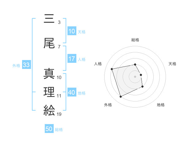 三尾 真理絵さんを姓名の画数から五運を鑑定