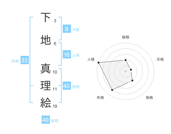 下地 真理絵さんを姓名の画数から五運を鑑定