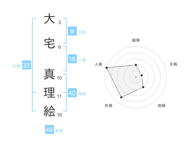 大宅 真理絵さんを姓名の画数から五運を鑑定