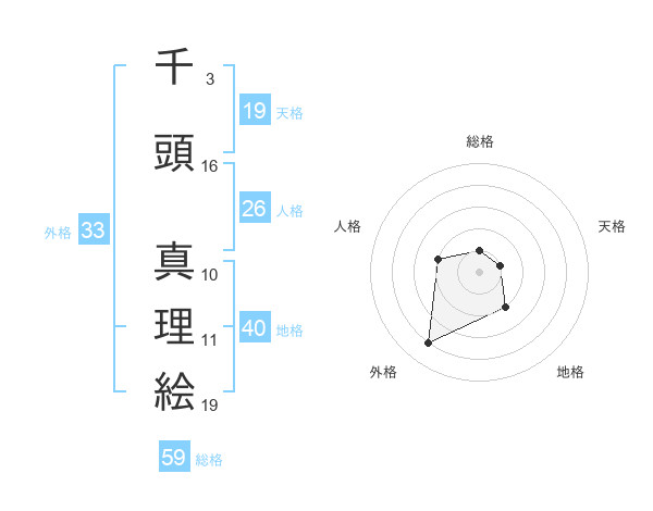 千頭 真理絵さんの天格は19画の1点!