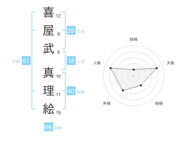 喜屋武 真理絵さんを姓名の画数から五運を鑑定