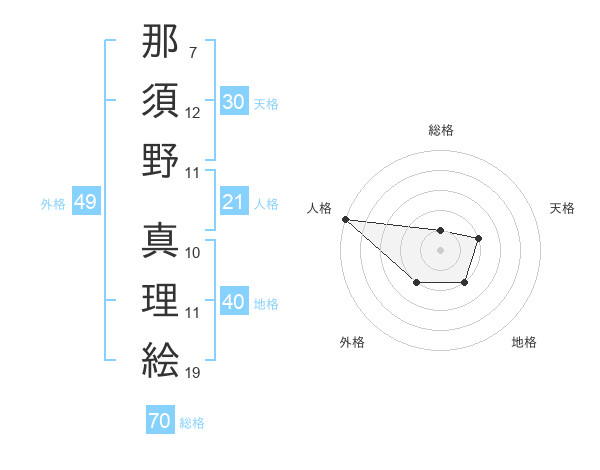 那須野 真理絵さんを姓名の画数から五運を鑑定