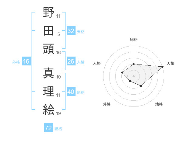 野田頭 真理絵さんの天格は32画の5点!