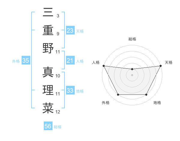 三重野 真理菜さんを姓名の画数から五運を鑑定