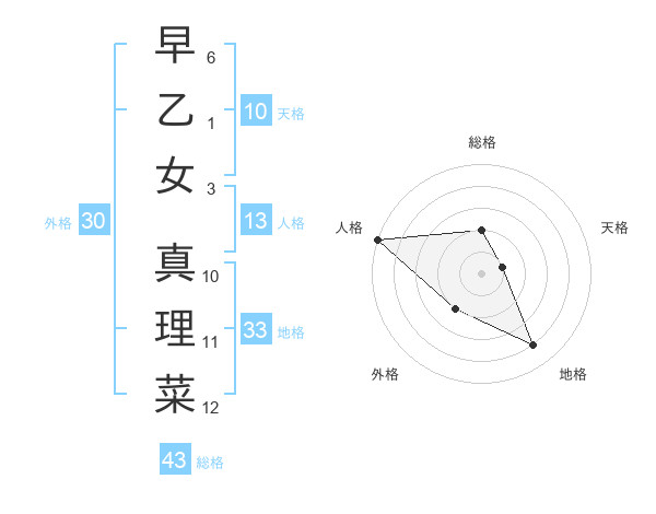 早乙女 真理菜さんの総格は43画の2点!