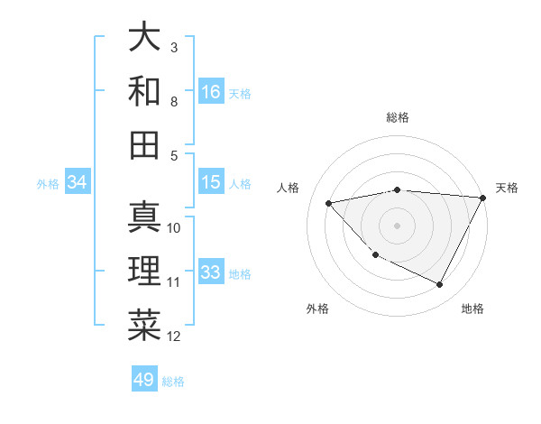 大和田 真理菜さんを姓名の画数から五運を鑑定