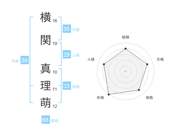 横関 真理萌さんを姓名の画数から五運を鑑定