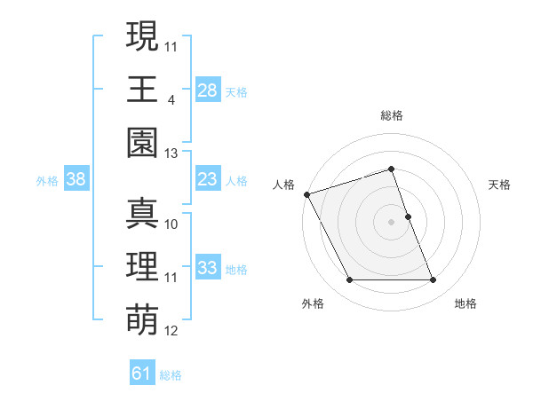 現王園 真理萌さんの外格は38画の4点