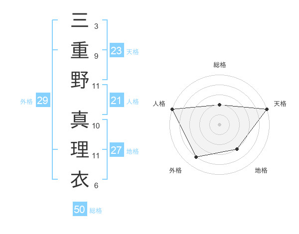 三重野 真理衣さんの総格は50画の2点!