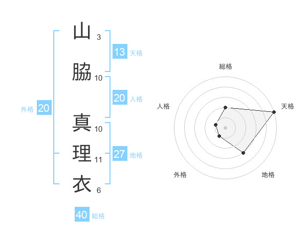 山脇 真理衣さんを姓名の画数から五運を鑑定