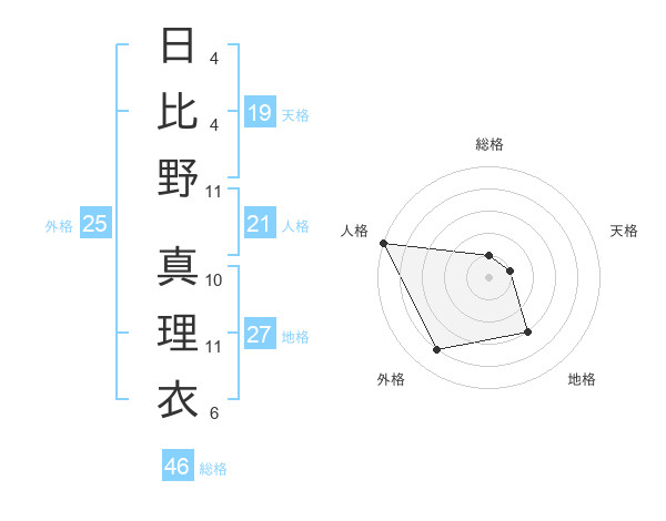日比野 真理衣さんを姓名の画数から五運を鑑定
