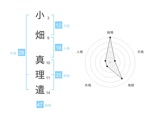 小畑 真理遣さんを姓名の画数から五運を鑑定