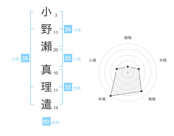 小野瀬 真理遣さんを姓名の画数から五運を鑑定