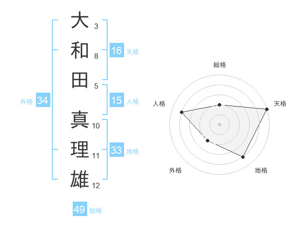 大和田 真理雄さんの外格は34画の2点!