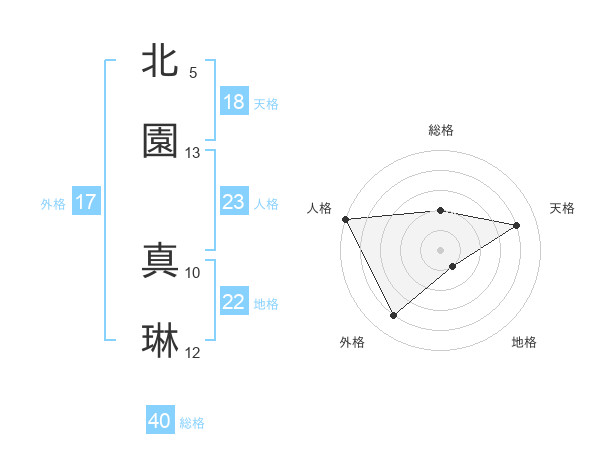 北園 真琳さんの人格は23画の5点!