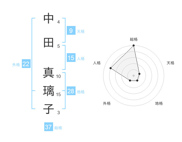 中田 真璃子さんを姓名の画数から五運を鑑定