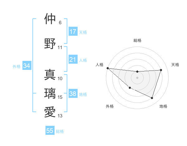 仲野 真璃愛さんの地格は38画の4点!