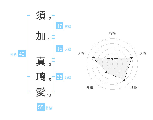須加 真璃愛さんの地格は38画の4点!