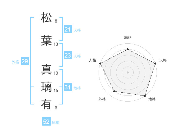 松葉 真璃有さんの総格は52画の4点!