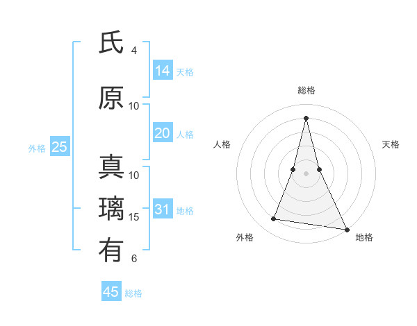 氏原 真璃有さんを姓名の画数から五運を鑑定